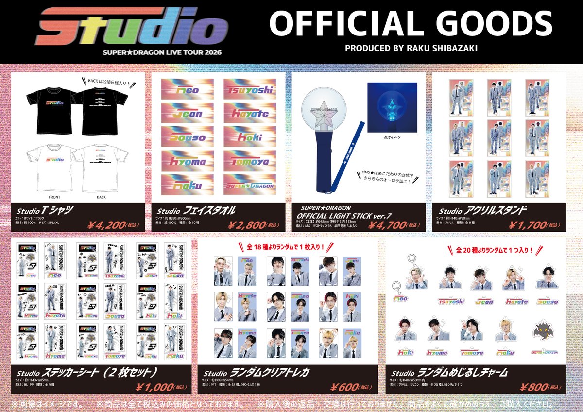 The youngest and cutest member of the group who is actually a cat. He likes drawing, and takes the role of designing, illustrating, and producing SUPER ★ DRAGON’s tour merchandise and logos. He has been designing merch for their tours since MOVE ON (2022), and has been doing graphic design since Persona (2023). He is often called the "princess" of the group by the other members and fans.